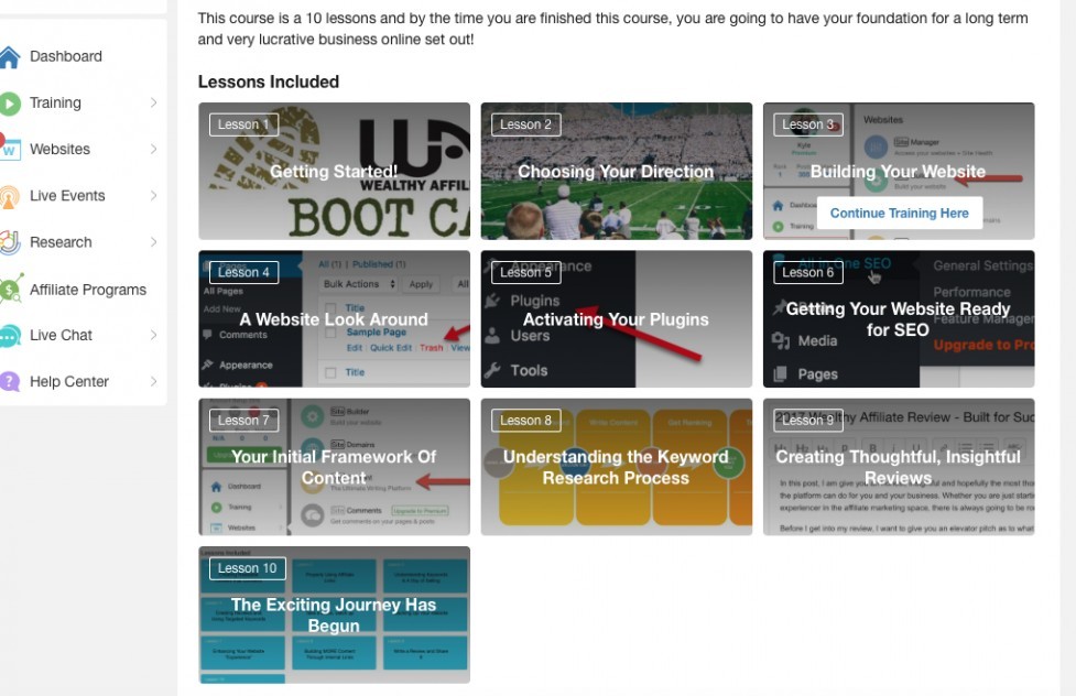 If you have never used WordPress before you will do well to click on the training button you will see on the left-hand side of your screen. There are ten free lessons here to get you started in the right direction as you start to build out your website.