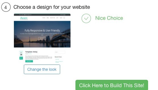 If you are happy with the look of your site, simply press’ click here to build this site!’