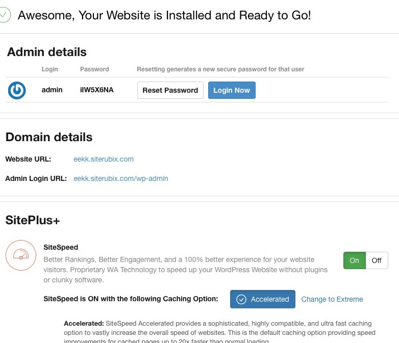 If you want to start working on your website you will want to click on the button that says ‘login now’ under admin details.